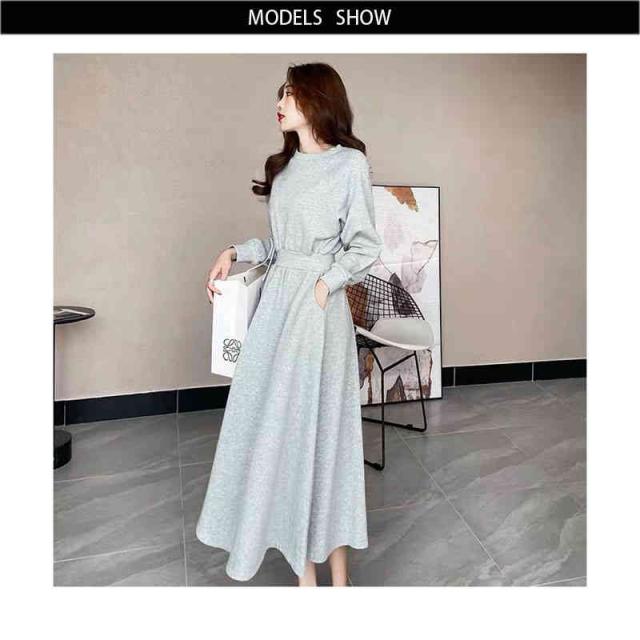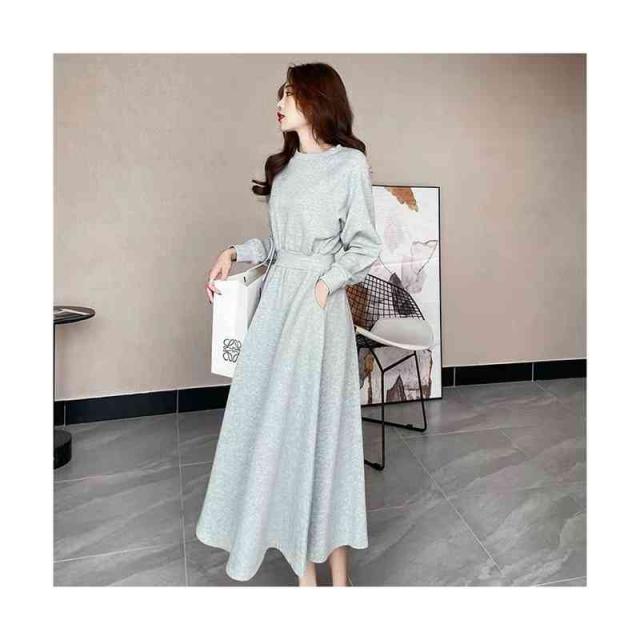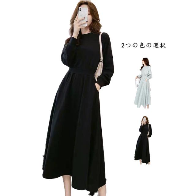 レディース トレーナー スウェットワンピース パーカーワンピース 送料無料 ワンピース 長袖 ロング丈 マキシ丈 ワンピース 丸首 プルオーバー スエット ワンピース Aライン マタニティ 無地 大きいサイズ 春秋