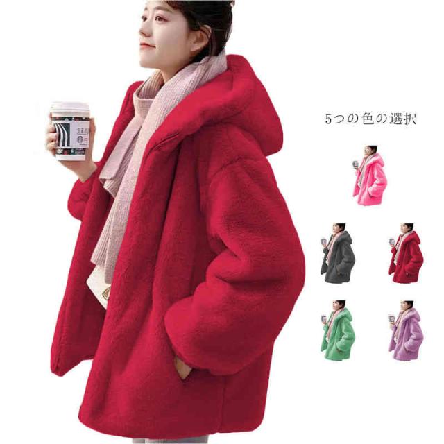 ファージャケット レディース 秋冬 アウター フード付きジャケット ロング丈 ジャケット ファー フード付き 柔らかい オーバーサイズ 大きいサイズ シンプル 暖かい 防寒 普段使い フェミニン