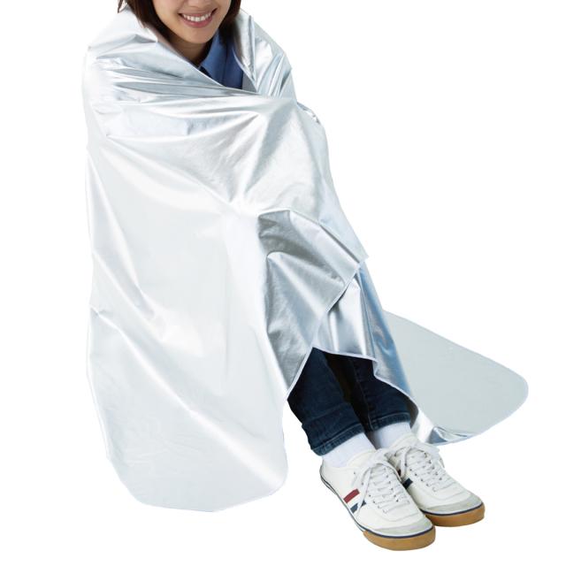 災害時や帰宅困難時、レジャーなどでの防寒や寝具に便利なアルミシートです。サッとたたんで繰り返し使えるので、もしもに備えて車内やカバンの中に入れておくのがおすすめです。肩からすっぽり羽織れる大判のサイズで、ひざ掛けや下に敷いて底冷え予防にも活躍します。