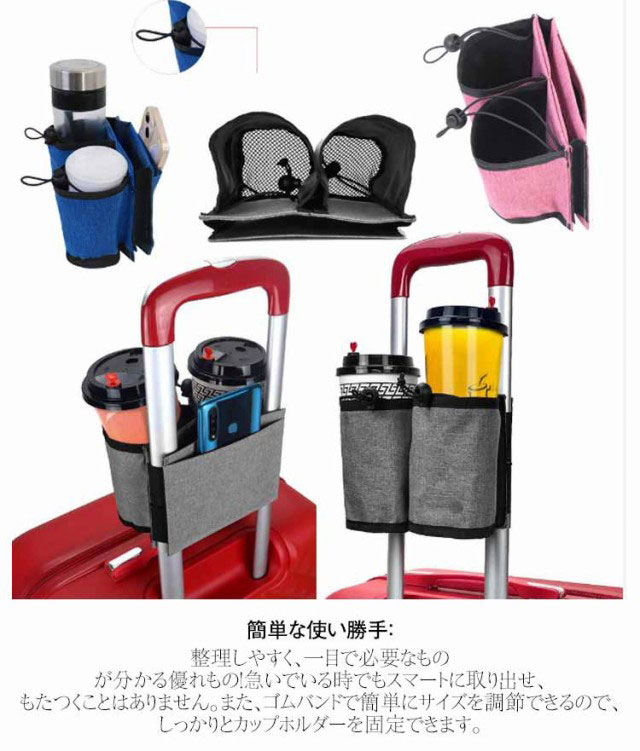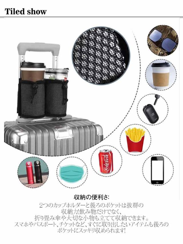 スーツケース用 ボトルホルダー ドリンクホルダー カップホルダー 小物入れ ホルダー ポケット付き 出張用 水筒入れ 水筒 飲み物ホルダー 旅行 機内持ち込み スーツケース キャリーケース 旅行ケース カップホルダー 簡単装着