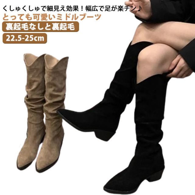 ミドルブーツ レディース ワイド 靴 ショートブーツ 裏起毛 ローヒール スエード調 くしゅくしゅブーツ 歩きやすい ぺたんこ チャンキーヒール 大きいサイズ ブーツ ナウシカブーツ 太め 筒周り 婦人靴 カジュアル 合皮 ローヒール 疲れない 美脚 秋冬 送料無料