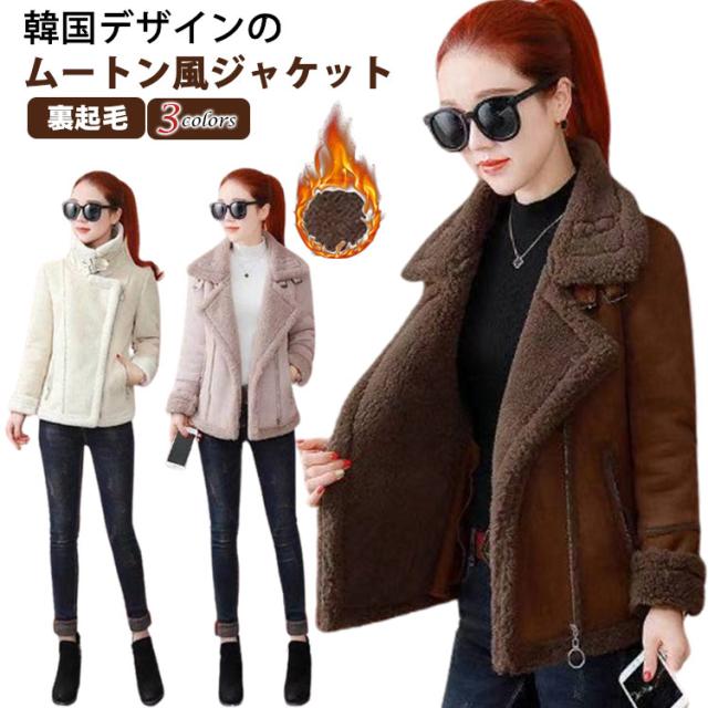 ライダースジャケット ムートンジャケット ムートンコート ボア コート レディース 暖かボア 大きいサイズ ライダース フェイクムートン ボア ジャケット もこもこ あったか 裏ボア ボアコート スエード スウェード 裏起毛 防寒 秋冬 秋 冬 韓国 冬コート 送料無料