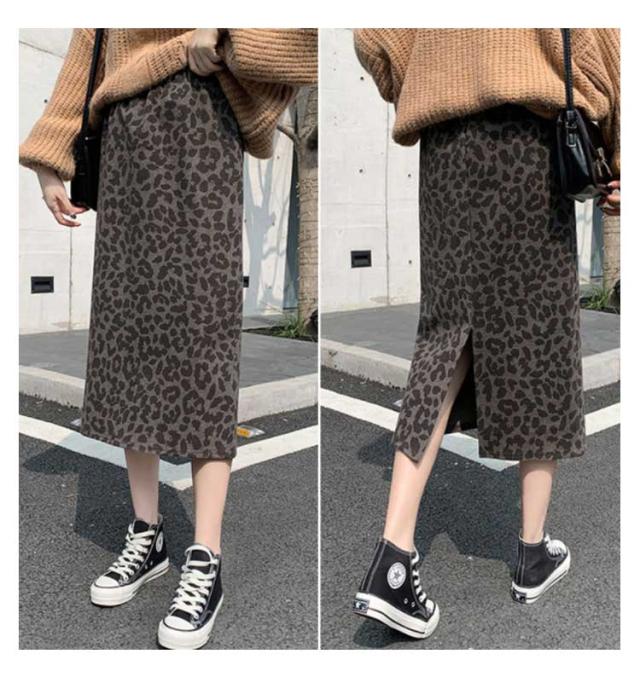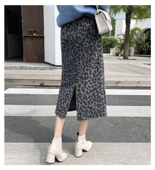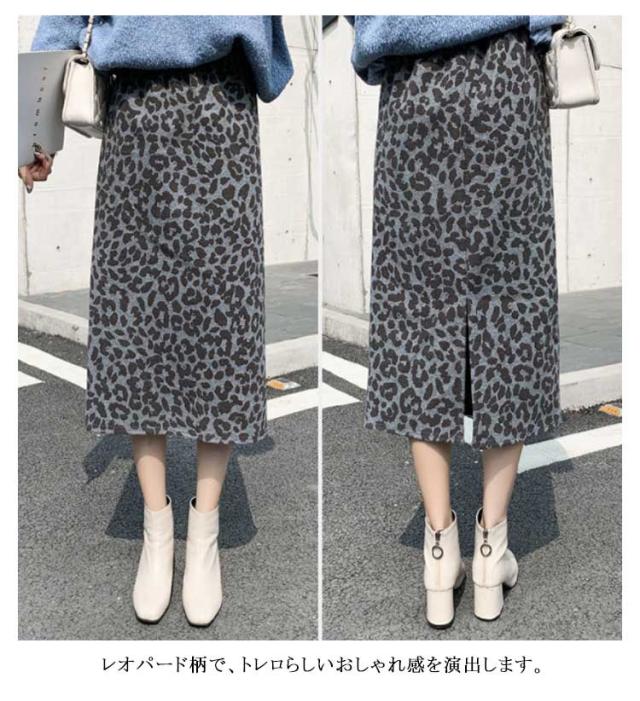 ウールライク ロングスカート 秋冬 タイト レディース スカート レオパード ミモレ丈 ハイウェスト レオパード柄 ヒョウ柄 バックスリット 冬 カジュアル ひざ下 おしゃれ S M L XL