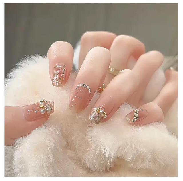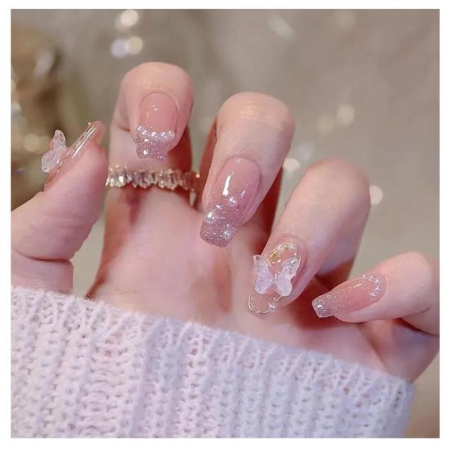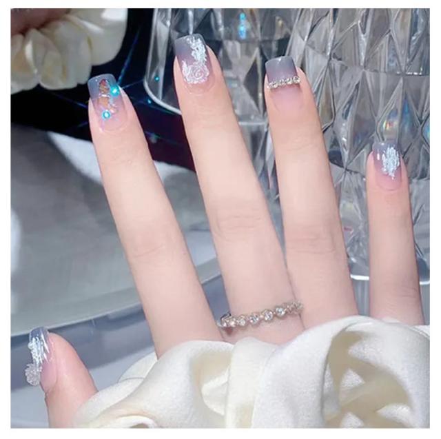 | 48枚入り 接着剤のいらないワンタッチタイプ 爪付け3Dネイルチップ付き繰り返す利用可能 簡単貼れる!! | |