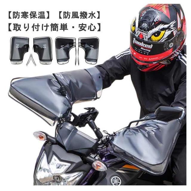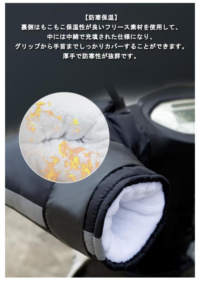 バイク 防寒 ハンドルカバー 防寒グッズ スクーター 防風 保温 防水 オートバイ ハンドルカバー 冬用 手袋 ハンドルウォーマー 裏起毛 中綿入り 厚手 夜間反射テープ付き 防水カバー付き 防寒グッズ バイク グローブ 男女兼用