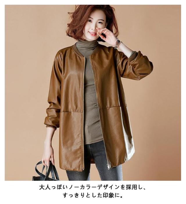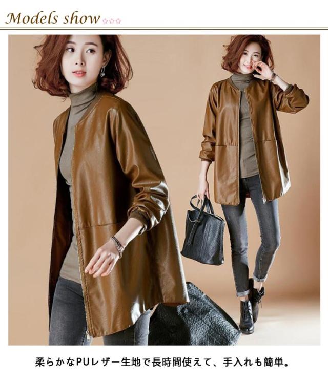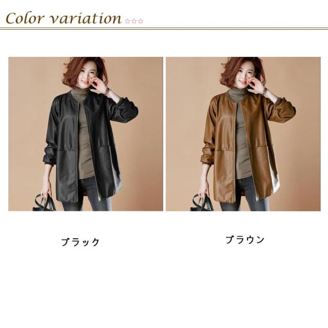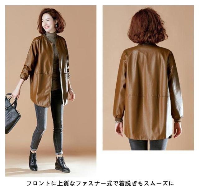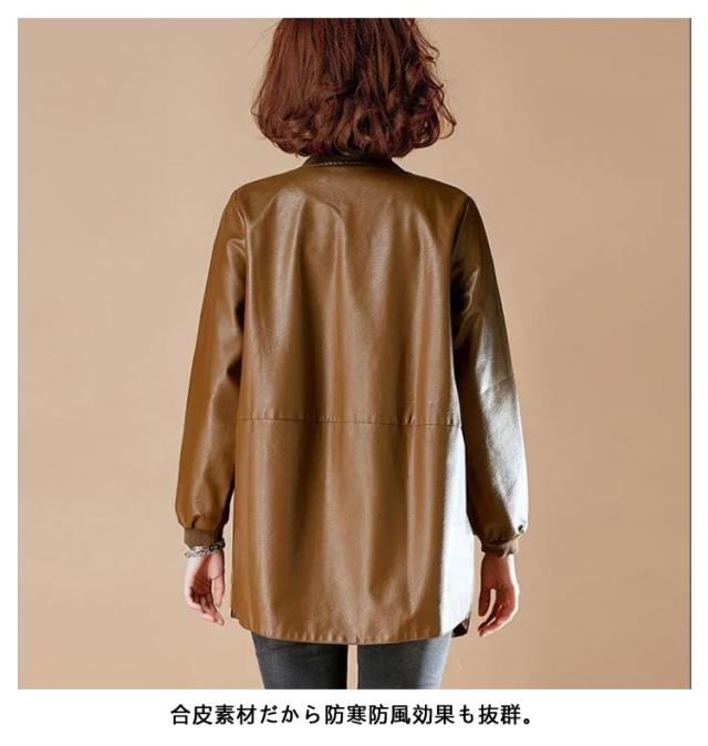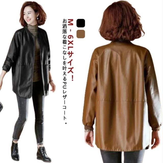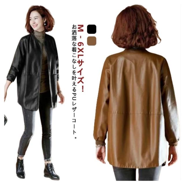 合皮コート ノーカラーコート 7L フェイクレザー ロングコート レザーコート レディース アウター ノーカラー スタジャン PU 合皮 ジャケット コート ミドル丈 春秋用 30代 40代 50代 大きサイズ