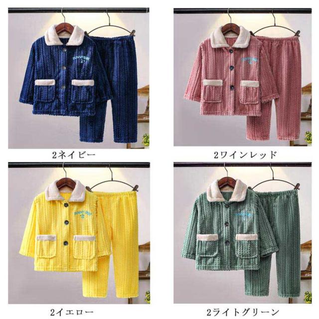 もこもこ パジャマ キッズ 女の子 男の子 ルームウェア 上下セット あったか フランネルパジャマ 子供パジャマ 秋 冬 厚手 暖かい 長袖 部屋着 前開き トップス 長ズボン セットアップ ジュニア 無地 おしゃれ 可愛い 寝巻き ナイトウェア 送料無料 80-160cm