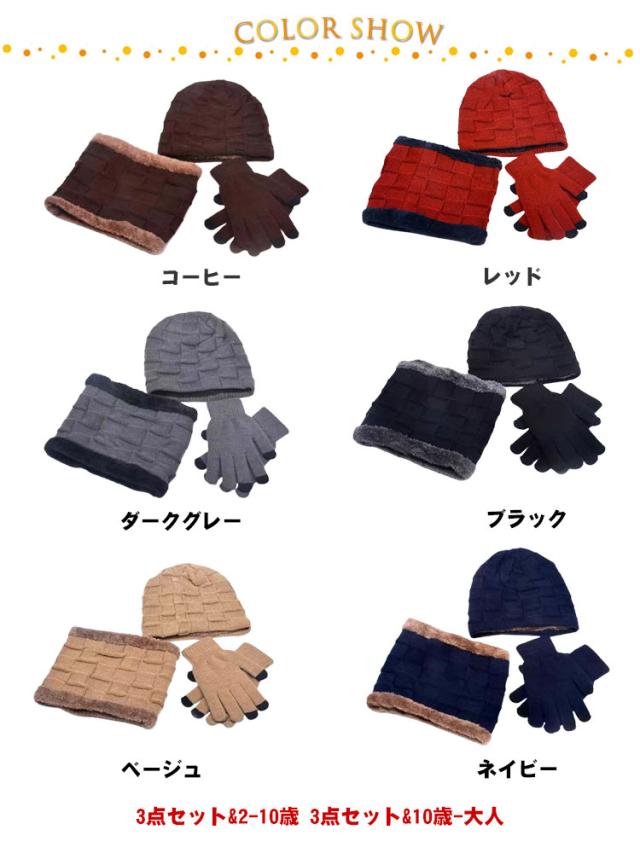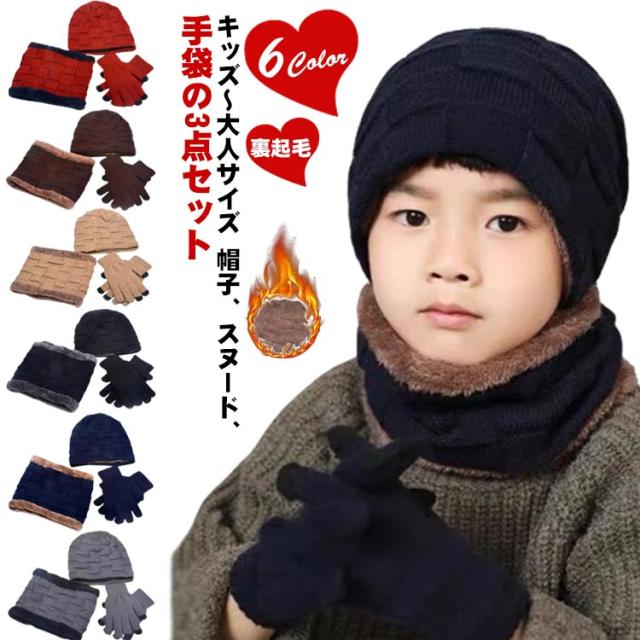 3点セット ニット帽 ニット帽子 マフラー 子供 秋 冬 スヌード 裏起毛 手袋 キッズ ニットキャップ レディース メンズ 帽子 マフラー セット 裏ボア 厚手 6色 男の子 女の子 ネックウォーマー ベビー あったか 自転車 通園 通学 スキー アウトドア 送料無料