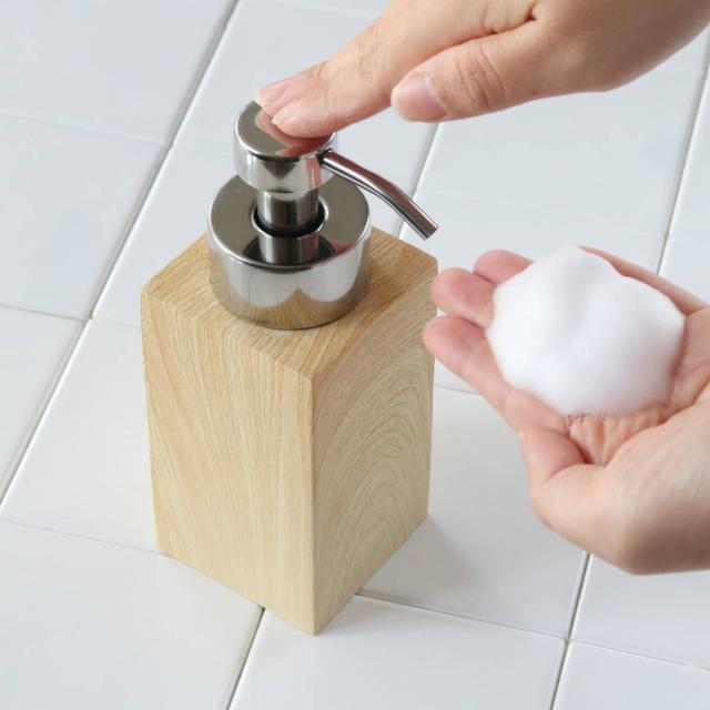 木目調のシンプルなデザインでどんな空間にも合うティンバーシリーズのフォームボトルです。泡タイプのハンドソープを入れて、キッチンや洗面所などお好みの場所でお使いいただけます。