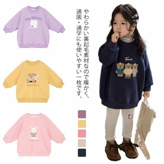 裏起毛 トレーナー キッズ 女の子 スウェット トップス パーカー 女児 ガールズ かわいい 暖かい 防寒 厚手 保育園 小学校 通園 通学 カジュアル 春 秋 冬