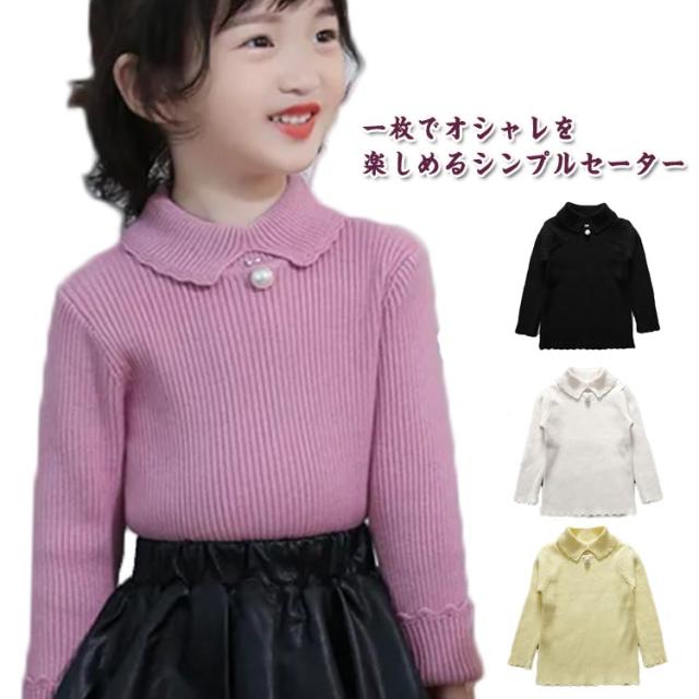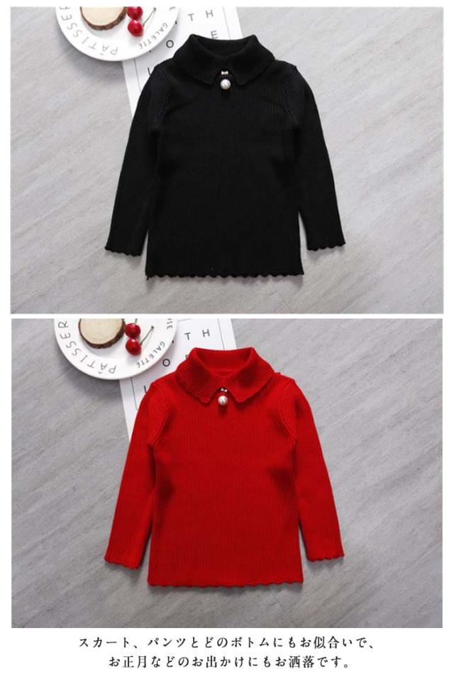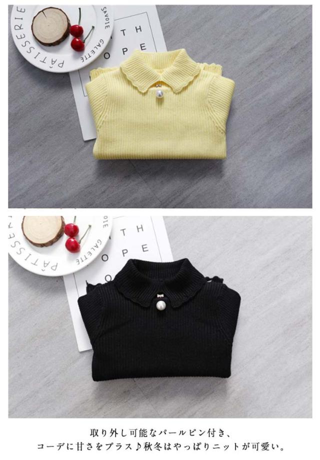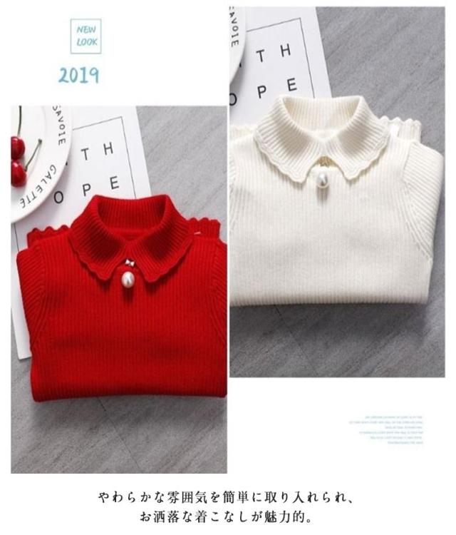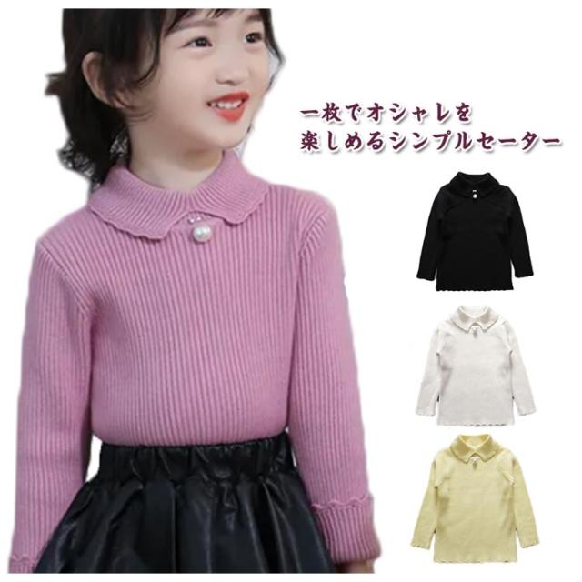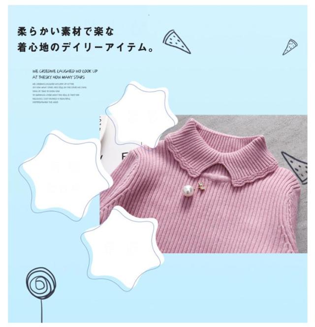セーター ニット 女の子 ハイネック キッズ ベビー 春 秋 冬 トップス 可愛い パール付き きれいめ 子供 キッズ 赤ちゃん ギフト トップス 無地 重ね着 暖かい 防寒 防風 冷え対策 レイヤード シンプル 通園 通学 送料無料