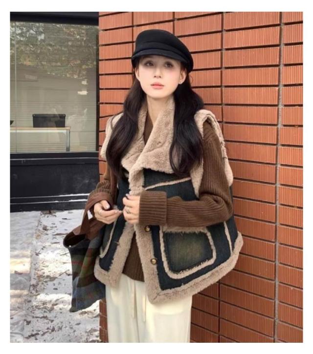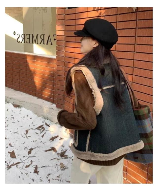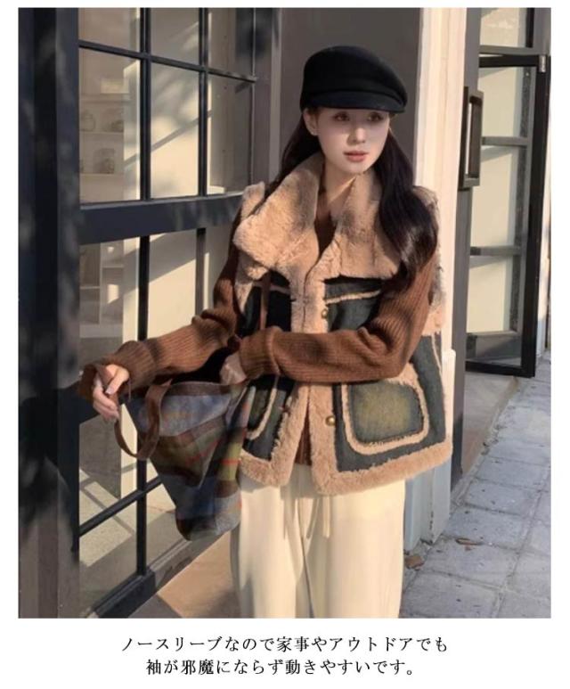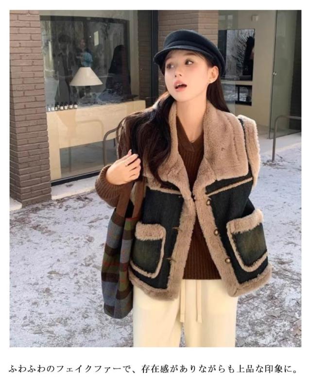 ベスト レディース デニムベスト 裏地付き ファーベスト フェイクファー ライトアウター ノーカラージャケット ファージャケット Gジャン ジージャン ノースリーブ 暖かい 防寒 黒 ジレ レイヤード 重ね着 ミドル丈 羽織り 秋 冬 春 ふわふわ もこもこ 韓国 送料無料