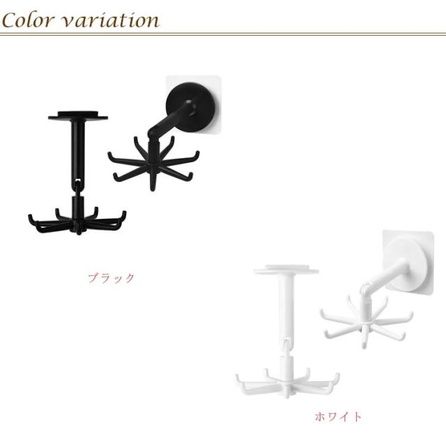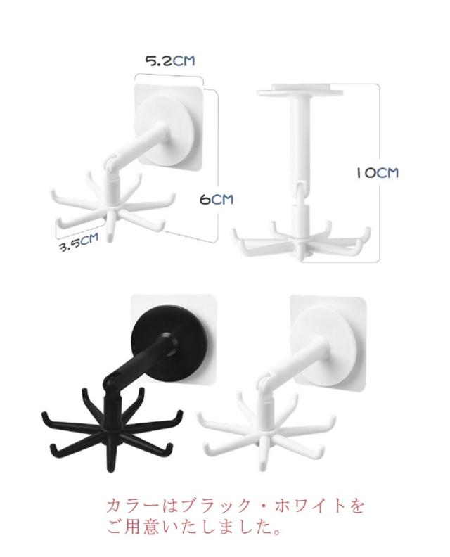 | 台所だけではなく、お部屋やバスルームにも活用できる。 省スペースでより多くのキッチン用具を収納できる。 カラーはブラック・ホワイトをご用意いたしました。 フック部分は360度回転、垂直設置で食器棚の下に、水平設置で壁面にぶら下げにも使用可能。 | |