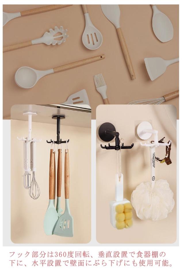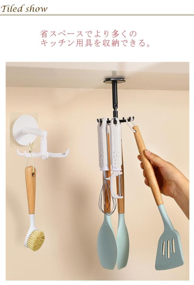 キッチンツールフック キッチン 収納 フック 台所収納フック 穴あけ不要 調理器具 7フック 食器ラック 壁掛け 吊り下げ ツール 整理 粘着固定 収納 お風呂 粘着フック 小物フック 360°回転可能 キッチン用品 吊り下げ収納 戸棚下収納 ブラック ホワイト 送料無料