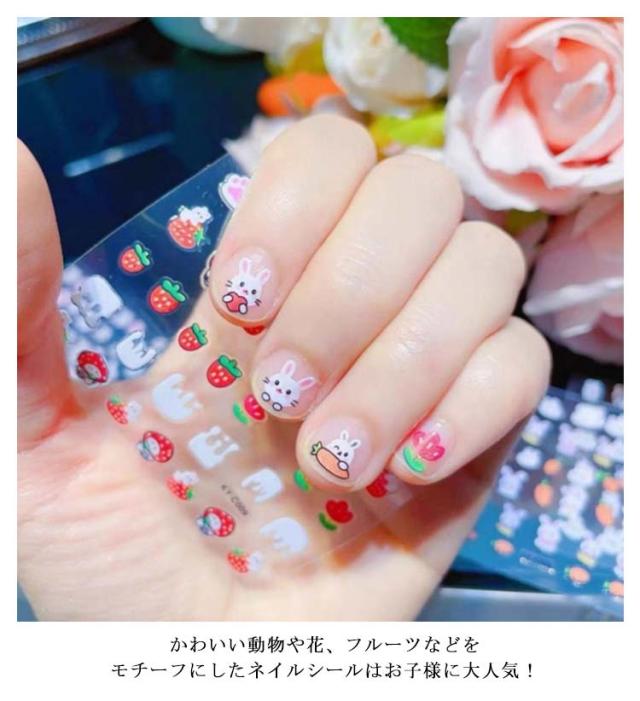 | 子供だってオシャレがしたい! キッズ用ネイルシール かわいい動物や花、フルーツなどをモチーフにしたネイルシールはお子様に大人気! シールは1枚あたり30枚、合計約1,000枚入っているので、思う存分楽しめます 爪に直接貼るだけの簡単操作 素材は安全で、子供の健康に影響を与えません。 | |