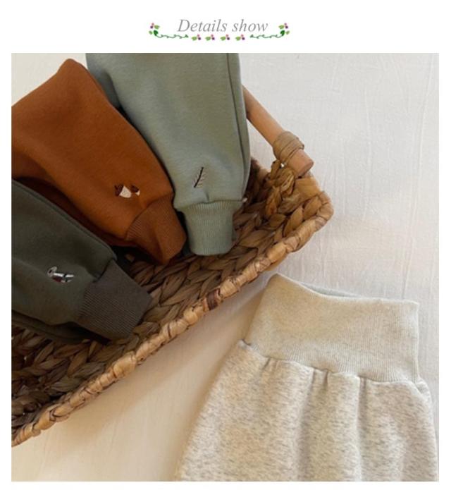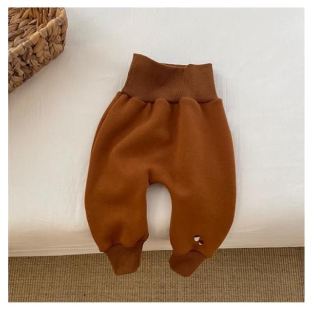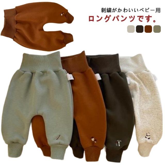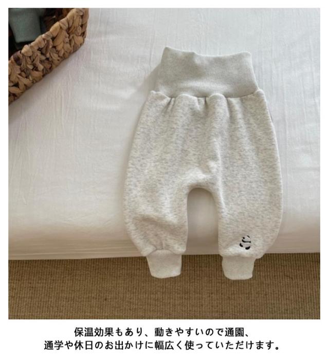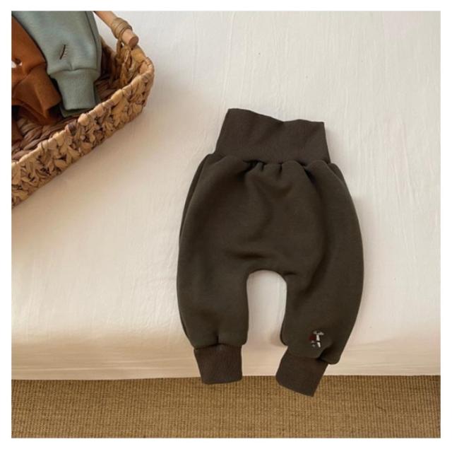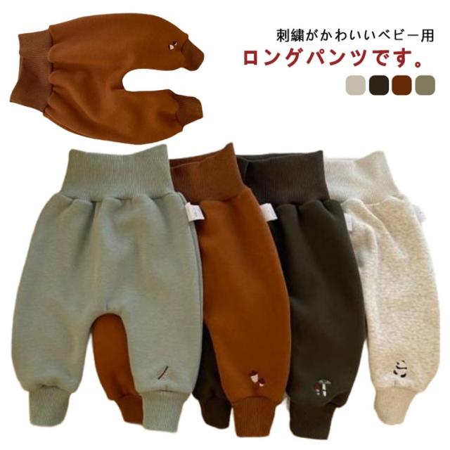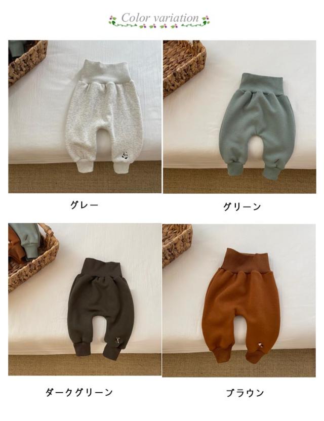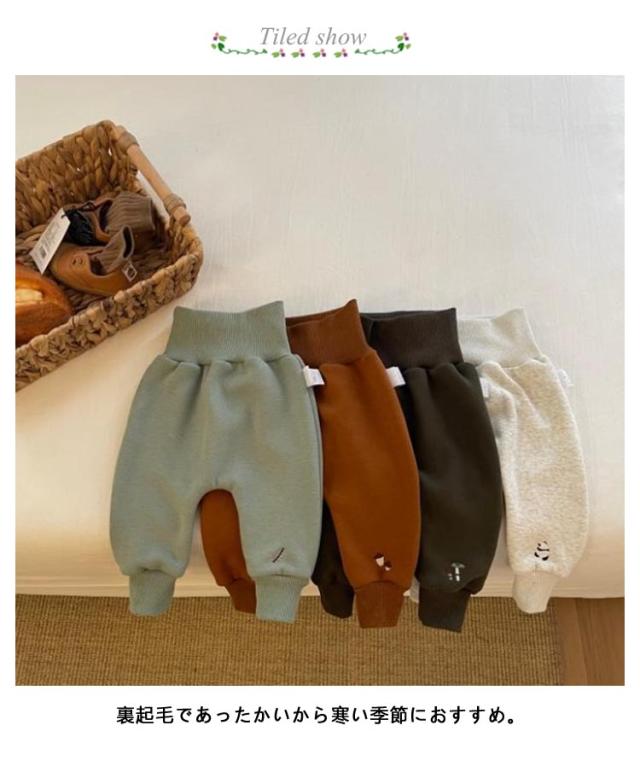 子供服 ハイウエストパンツ ベビー服 モコモコ パンツ 長ズボン 厚手 ボトムス 防寒 裏起毛パンツ 温かい お出かけ 赤ちゃん ベビー かわいい刺繍 あたたかい ズボン イベント 誕生日 男女兼用 女の子 男の子 グレー グリーン ダークグリーン ブラウン 73 80 90 100 送料無料
