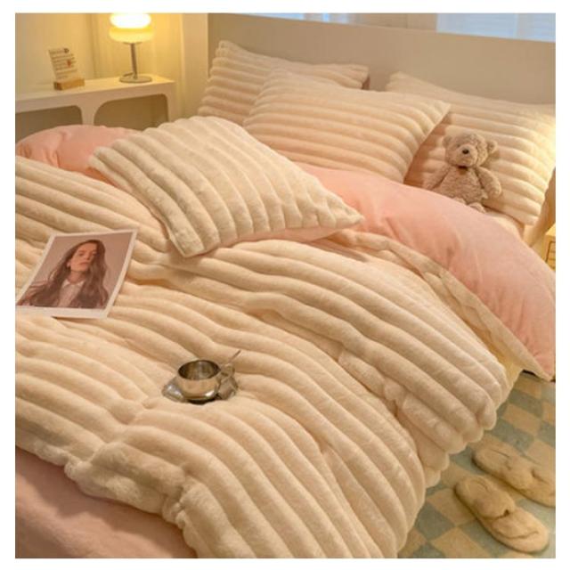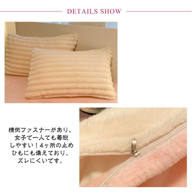 | ふわふわで長い毛足の極細繊維・エコラビットファーを表生地に使用した、おしゃれで暖かい布団カバーセットです。 空気をいっぱいに含んだ毛布生地なので見た目以上に軽くて動きやすい。 暖かいので寒い時期は大活躍。保温性が高い、これからの季節に重宝すると思います。 横側ファスナーがあり、女子で一人ても着脱しやすい!4ヶ所の止めひもにも備えており、ズレにくいです。 多色展開で、お好きな色が見つかるはずです。 布団に入った時のヒヤっと感が少なく、秋冬の快適な入眠をサポートします。 ご家庭で洗うことができますから清潔で安心。これはとっても便利! | |