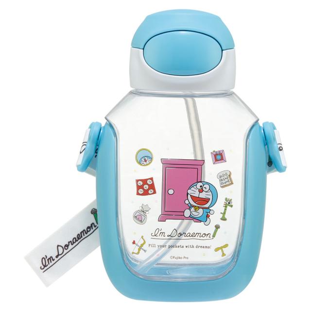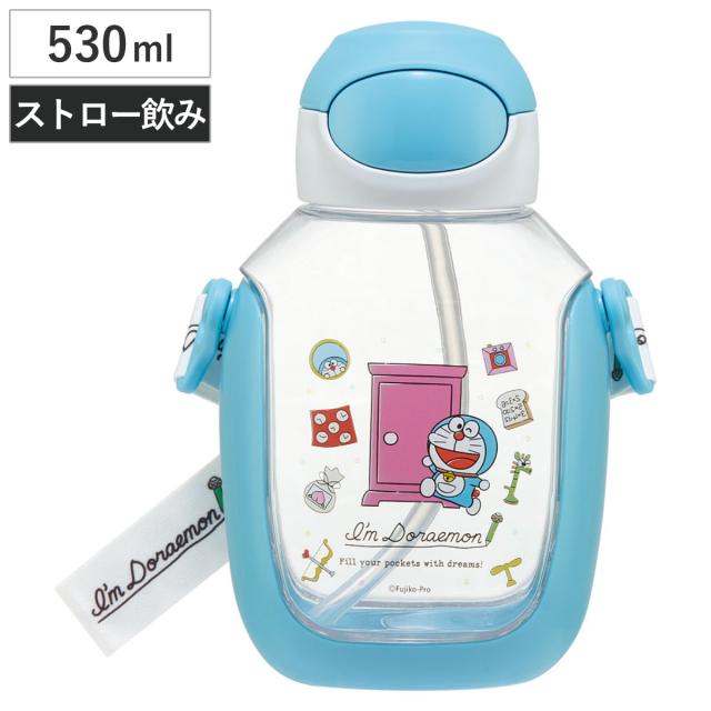 水筒 530ml ワンプッシュストローボトル DRラインデザイン ( ドラえもん ワンプッシュ ストロー ボトル プラスチック ストロー付き 軽量 直飲み こども マイボトル クリアボトル 透明 クリア シリコン ワンタッチ キッズ )