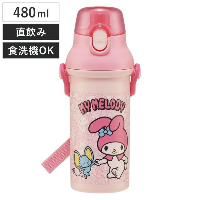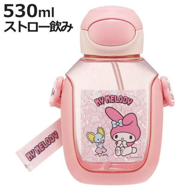 水筒 530ml ワンプッシュストローボトル MMうしろうしろ ( マイメロディ ワンプッシュ ストロー ボトル プラスチック ストロー付き 軽量 直飲み こども マイボトル クリアボトル 透明 クリア シリコン ワンタッチ キッズ )