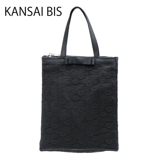 KANSAI BIS カンサイビズ 縦型 レース トートバッグ 18021 ブラック フォーマル シンプル リボン レース シック かわいい おしゃれ レディース ファッション 冠婚葬祭 軽量 コンパクト マチあり