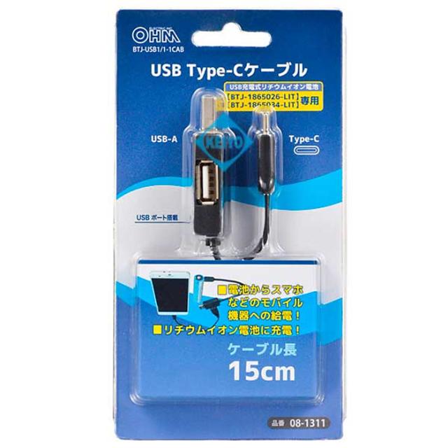BTJ-USB1/1-1CABは、電源出力機能搭載の18650規格リチウムイオン充電池専用15cm充電ケーブルです。