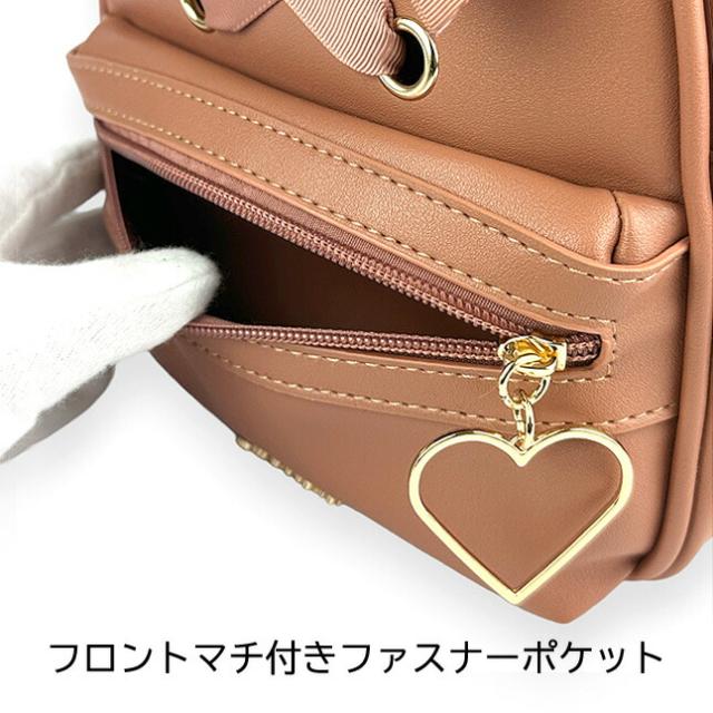 あみあげリボンとぷっくり立体ロゴがとってもキュートなミニリュック。
