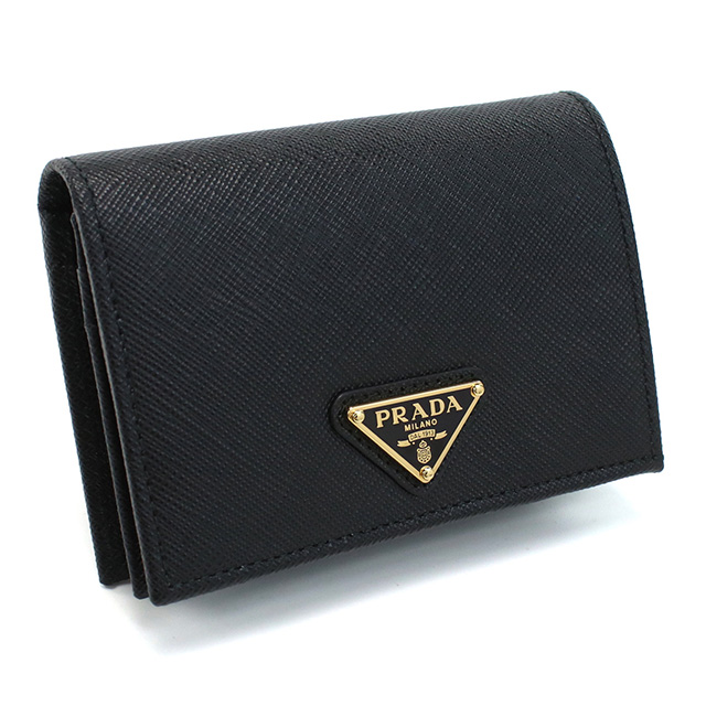 プラダ 二折財布小銭入付き レディース ブランド 財布 SAFFIANO TRIANGOLO レザー 1MV021 PRADA NERO ブラック