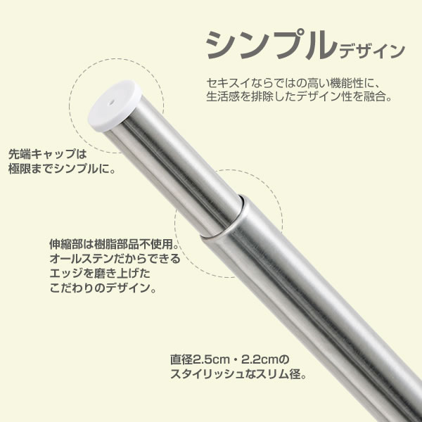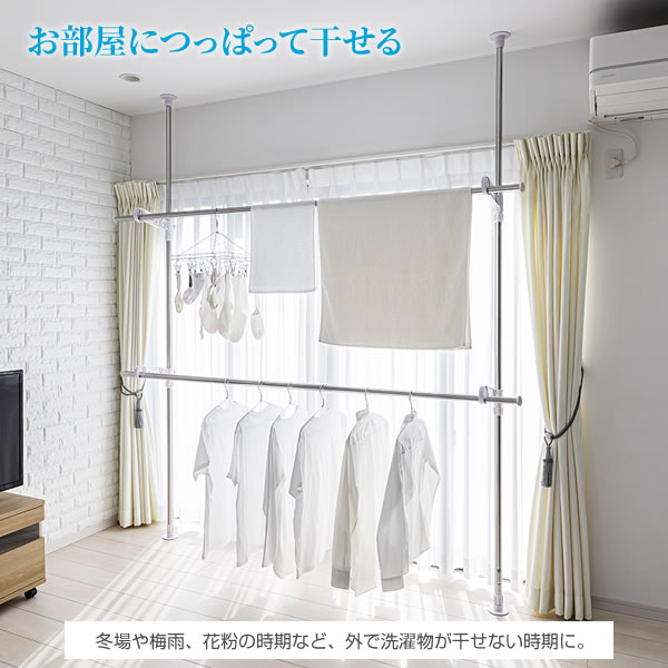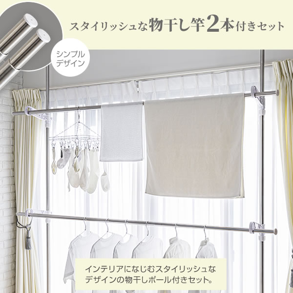 室内物干し セキスイ 突っ張り式 部屋干し ポール + ステンレス物干し竿2本セット セット(物干し竿2本付き) | つっぱり 室内干し 物干し台 物干台 洗濯物干し 窓際 天井 突っ張る 屋内 室内 物干し竿スタンド おしゃれ 物干竿 物干し竿