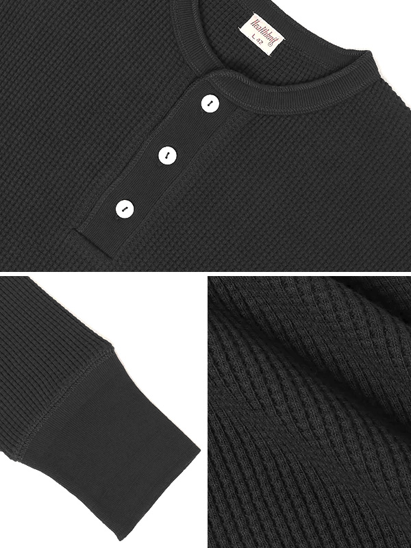 ヘルスニット スーパーヘビーワッフル ヘンリーネック長袖Tシャツ