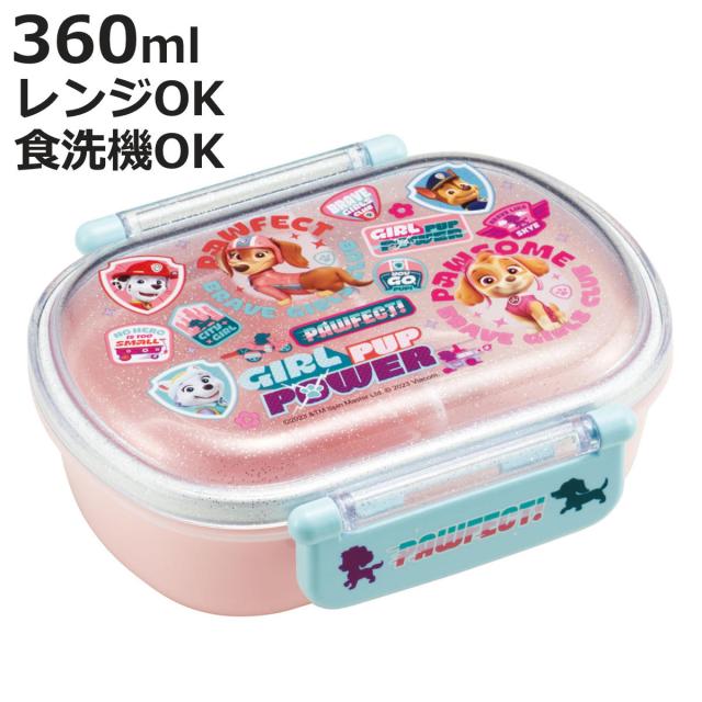 弁当箱 1段 360ml 抗菌ふわっとタイトランチ パウパトGIRL ( パウパトロール ランチボックス 食洗機対応 レンジ対応 抗菌 日本製 ドーム蓋 キッズ 子供 食洗機OK レンジOK お弁当 弁当 一段 2点ロック 銀 AG 抗菌加工 )
