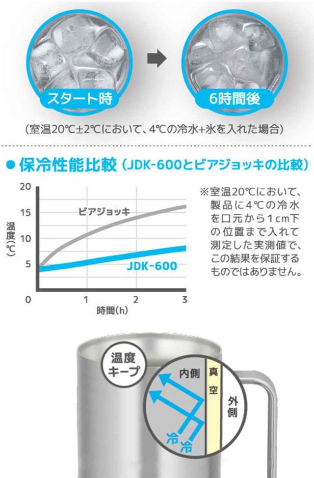 ビールジョッキ 1L 真空断熱 ステンレス JDK-1001 ( thermos 食洗機対応 ジョッキ ビールグラス ビアグラス ビール ハイボール お酒 アルコール 保温 保冷 真空二重構造 おしゃれ )