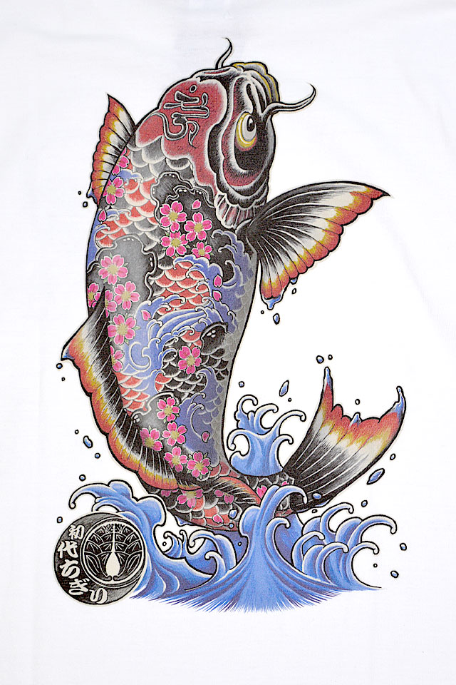 フロント左胸には、大鯉をワンカラーでプリントしています。