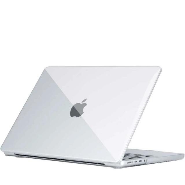上下のカバーが分かれており、別々に使用することもできます。表面の刻印は透明デザインを採用しており、MacBookのカラーを存分に楽しめます。本体にぴったりフィットし、着脱も簡単です。