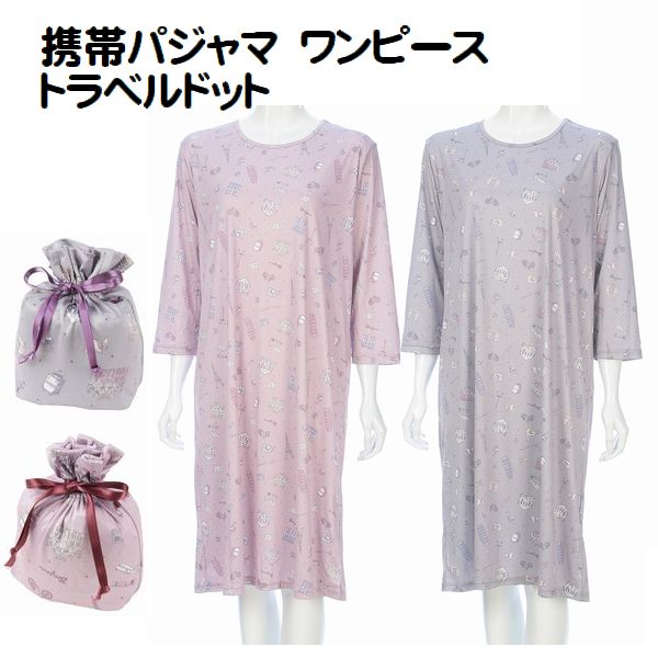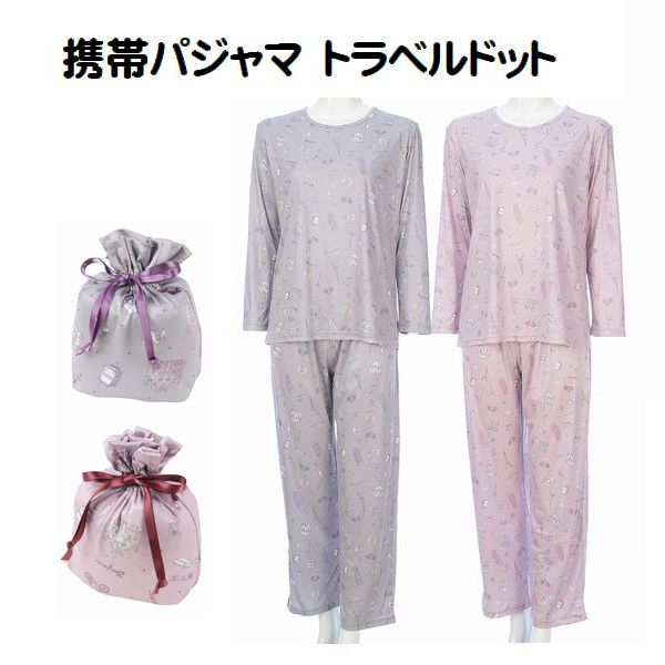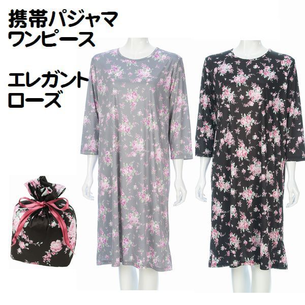 携帯パジャマ エレガントローズ柄 トラベルパジャマ ポーチ付 コンパクト パジャマ 旅行パジャマ 婦人 レディース ルームウエアー