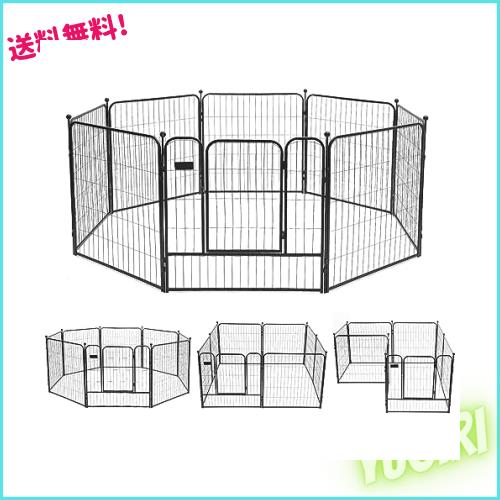 PETTOM 犬 サークル ペットフェンス 中大型犬用 スチール製 コンパクト 8枚組 高さ80cm 高さ100cm 室内外兼用 折り畳み式 組立簡単 軽量
