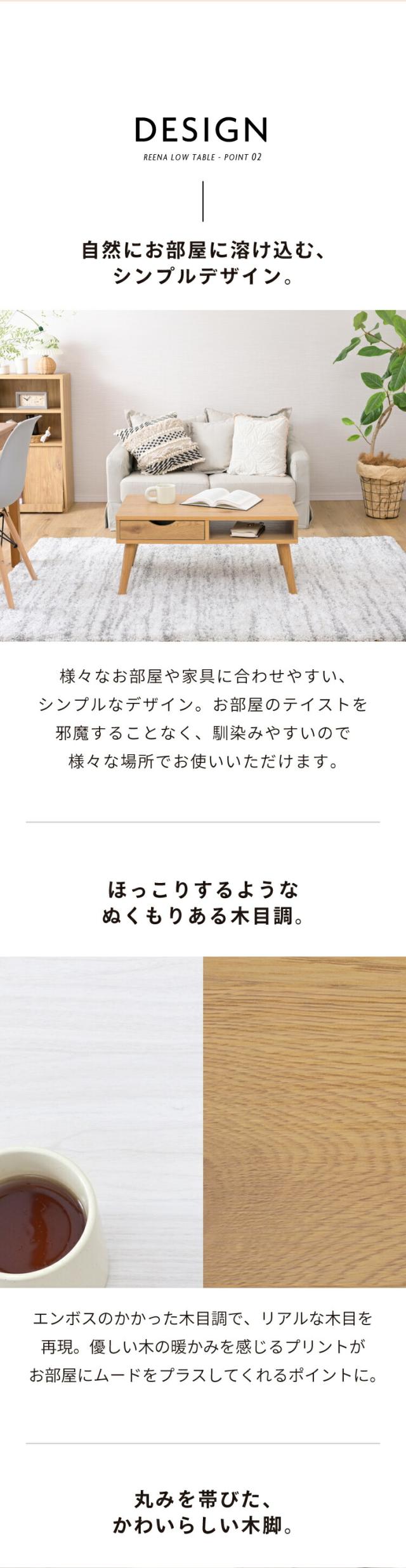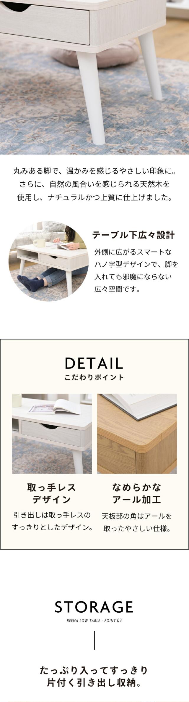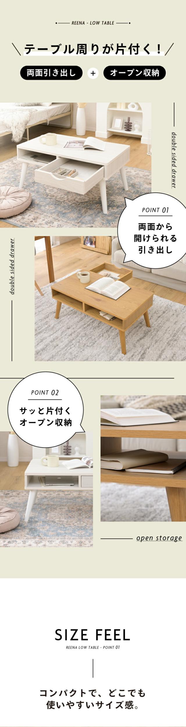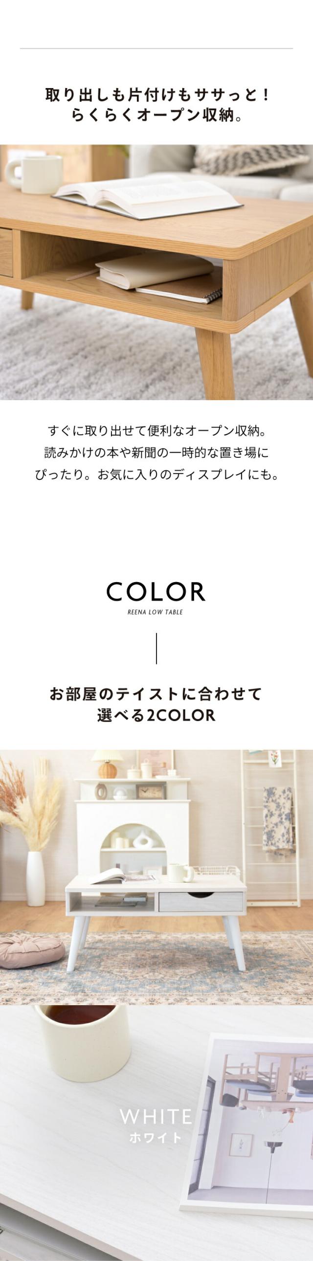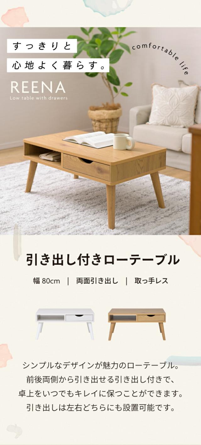 moca company リーナ センターテーブル 木製 テレワーク リモートワーク テーブル ロータイプ 勉強机 オシャレ かわいい 80 38 45 ローテーブル 引出し 収納 棚付き