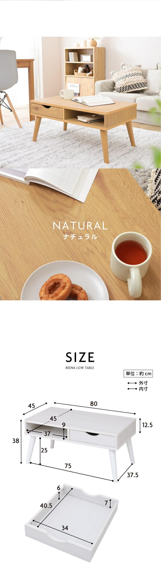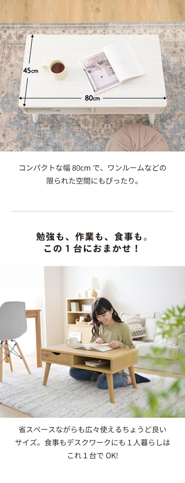 ローテーブル 引き出し センターテーブル 収納付き 北欧 おしゃれ 可愛い 一人暮らし 小さめ コンパクト 幅80 高さ38 角丸 ソファテーブル ダイニングテーブル リビングテーブル 机 白 ナチュラル