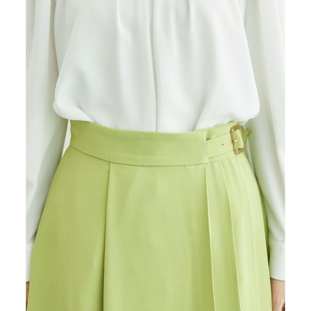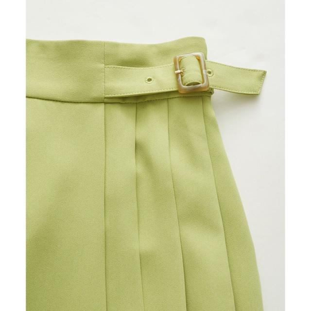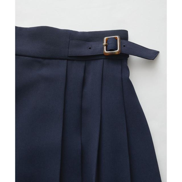 ・左サイドをプリーツで切り替えた、ラップ風スカート。
