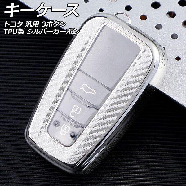 キーケース シルバーカーボン 3ボタン TPU製 トヨタ 汎用 AP-AS983-SIC