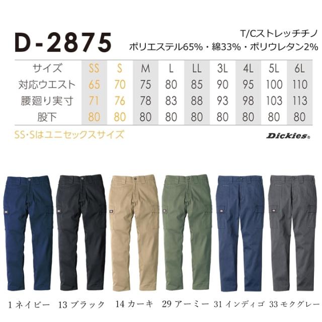 ディッキーズ カーゴパンツ ワークパンツ Dickies D-2875 ストレッチ チノパン 874 男女兼用 秋冬 春夏 年間 メンズ レディース アウトドア カジュアル アメカジ 作業服 作業着