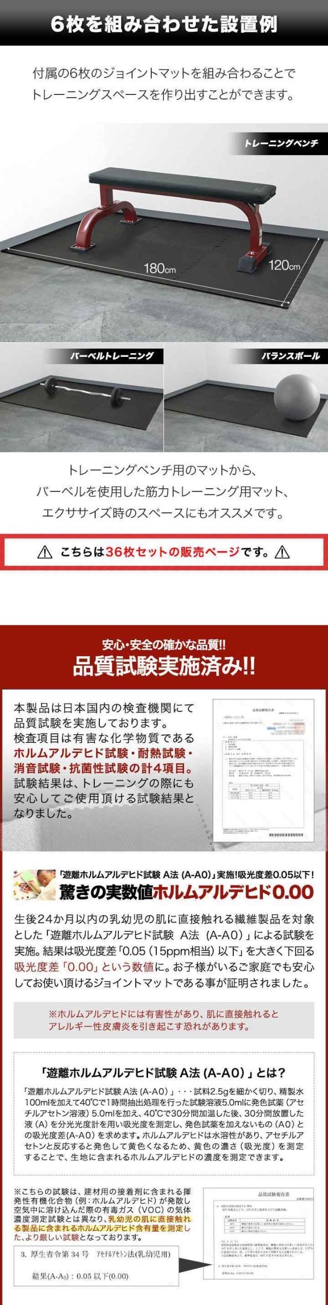 トレーニングマット 筋トレ マット 大判 60cm 36枚組 厚手 10mm ジョイントマット 防音 防振 キズ防止 ストレッチマット フィットネスマット ヨガマット ダイエット 筋トレグッズ トレーニング/エクササイズ用ジョイントマット 1年保証 送料無料