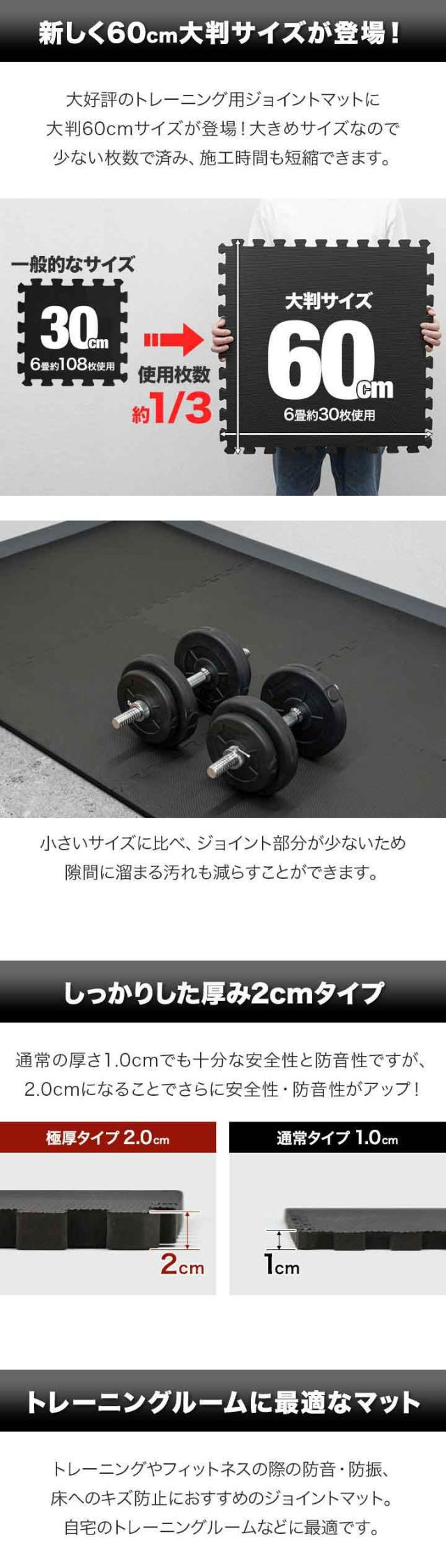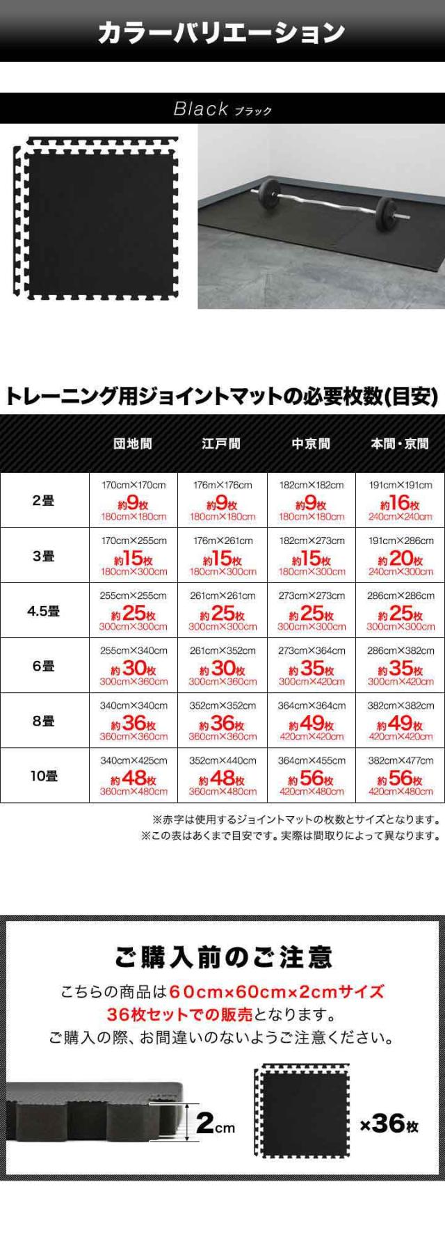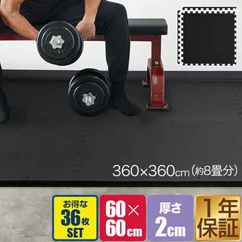 トレーニングマット 筋トレ マット 大判 60cm 36枚組 厚手 20mm ジョイントマット 防音 防振 キズ防止 ストレッチマット フィットネスマット ヨガマット ダイエット 筋トレグッズ トレーニング/エクササイズ用ジョイントマット 1年保証 送料無料