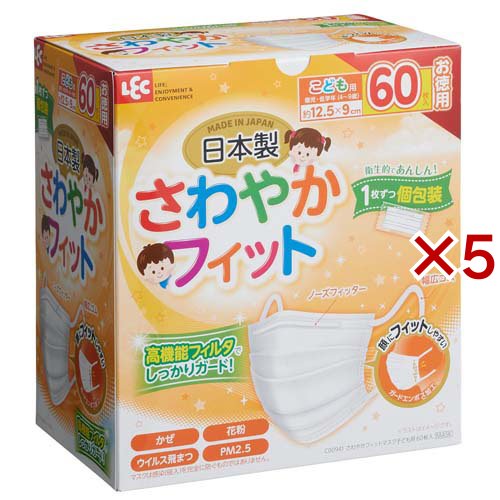 さわやかフィット 日本製 不織布マスク 子ども用 個包装 JIS規格適合(60枚入×5セット)[不織布マスク]