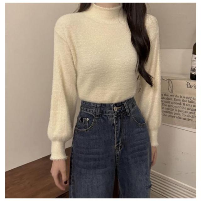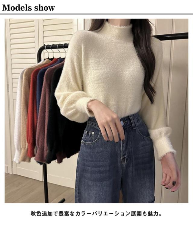 トップス レディース ハイネック もこもこ ニットトップス 秋 タートルネック ニット インナー セーター あったか 無地 シャギーニット 裏起毛 ニット 暖かい ふわふわ 防寒 寒さ対策 冬 レイヤード 重ね着 シンプル 着回し 通勤 オフィス 上品