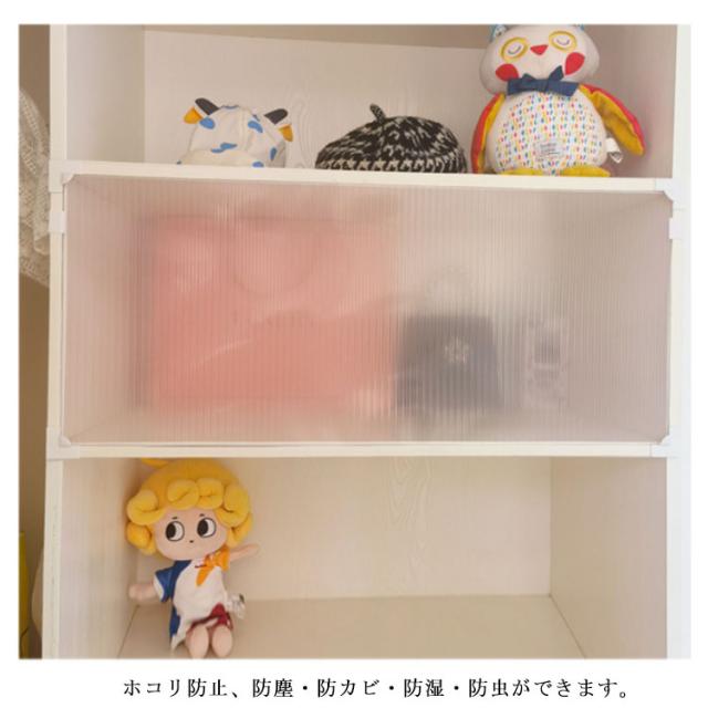 | カラーボックスをスッキリお洒落にドレスアップ! 磁気テープが付いているので、あらゆるところにご利用可能。 取っ手もあり、物を取りやすい、時間もかかりません。 半透明な材質で中身を外から見やすいので、物を探すも時間がかかりません。 ホコリ防止、防塵・防カビ・防湿・防虫ができます。 ボックス側とカバー側にそれぞれ貼り付けることで、取付・取り外しも簡単にできます。 目隠しとしてだけではなく、リメイク用の素材としてもご活用いただけます。 | |