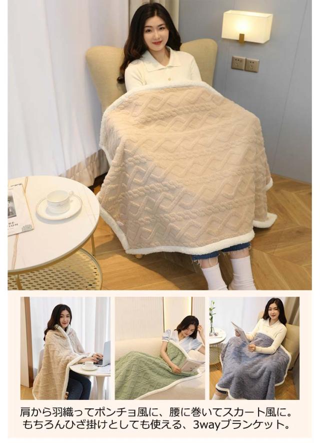 3WAY ブランケット 軽量 シンプル 大判 巻きスカート 着る毛布 ふわふわ ポンチョ フランネル 防寒対策 裏起毛 暖かい 冷え対策 ひざ掛け おしゃれ デスクワーク 寒さ対策 テレワーク 送料無料 クリスマス