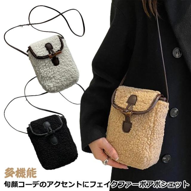 肩掛け ボア 秋冬 斜めがけ ミニショルダーバッグ スマホポシェット 送料無料 もこもこ バッグ ショルダーバッグ ふわふわ スマホポーチ おしゃれ 財布 送料無料 縦型 小さめ ミニ 多機能 携帯ポーチ かわいい コンパクト