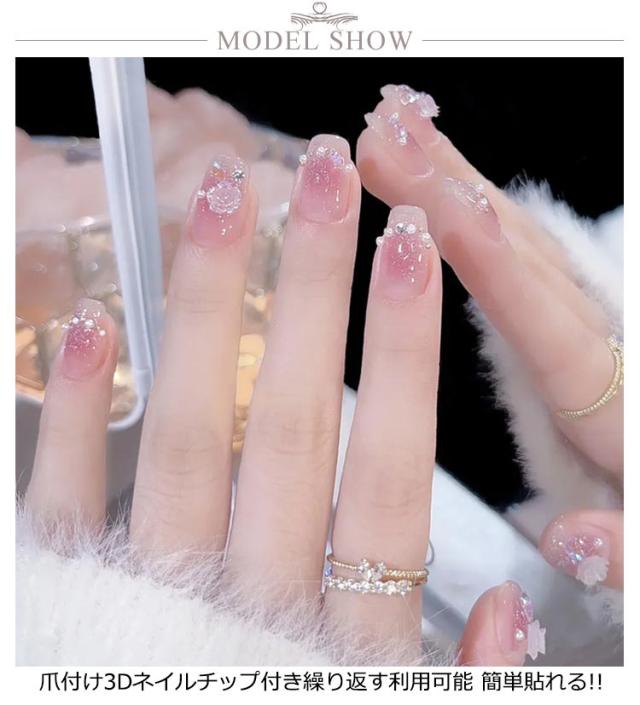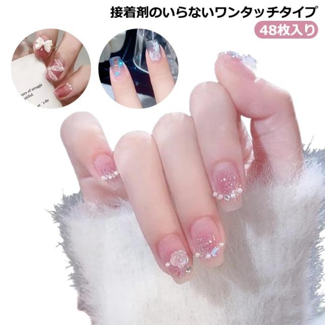 | 48枚入り 接着剤のいらないワンタッチタイプ 爪付け3Dネイルチップ付き繰り返す利用可能 簡単貼れる!! | |