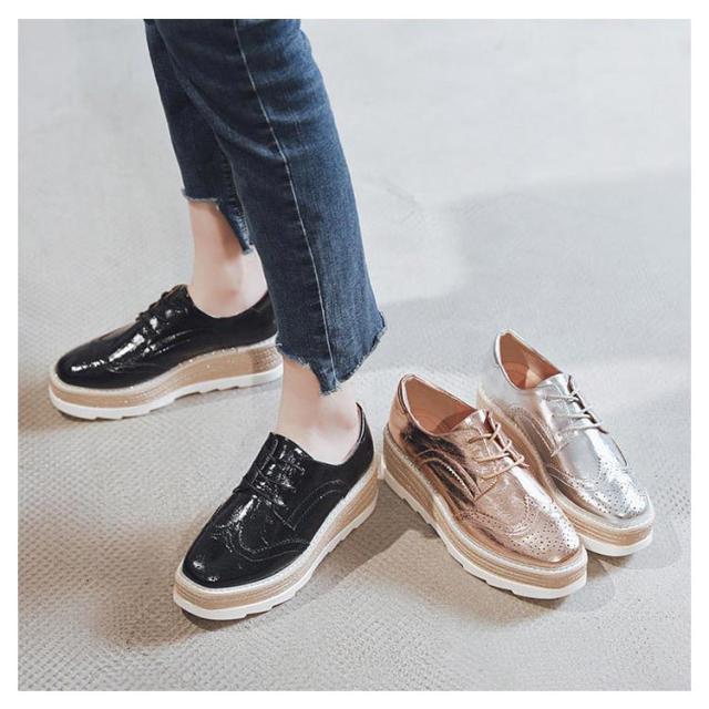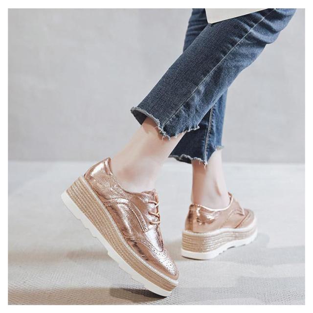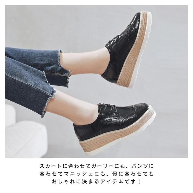パンプス ブーティ 厚底スニーカー 22-24.5cm プラットフォームシューズ レディース ウェッジソール ローファー 春秋 編み上げ レザー 学生靴 合成皮革 丸トゥ おしゃれ 靴 ローファー 通学