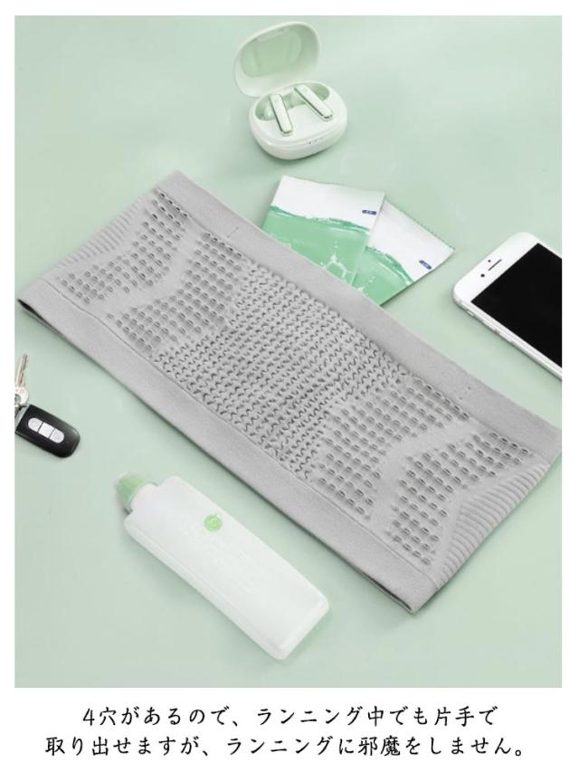 | フィットネス中の小物の持ち運びがスマートに!軽量&コンパクトなランニングポーチ。 体にぴったりフィットするので着けていることも忘れるほどの抜群の安定感♪ 4穴があるので、ランニング中でも片手で取り出せますが、ランニングに邪魔をしません。 大型スマホや鍵もサプリメントなどランニング中に必要なものが全部収納できます。 通気メッシュの設計なので、腰回りの熱を効率よく排出し、蒸れません。 | |